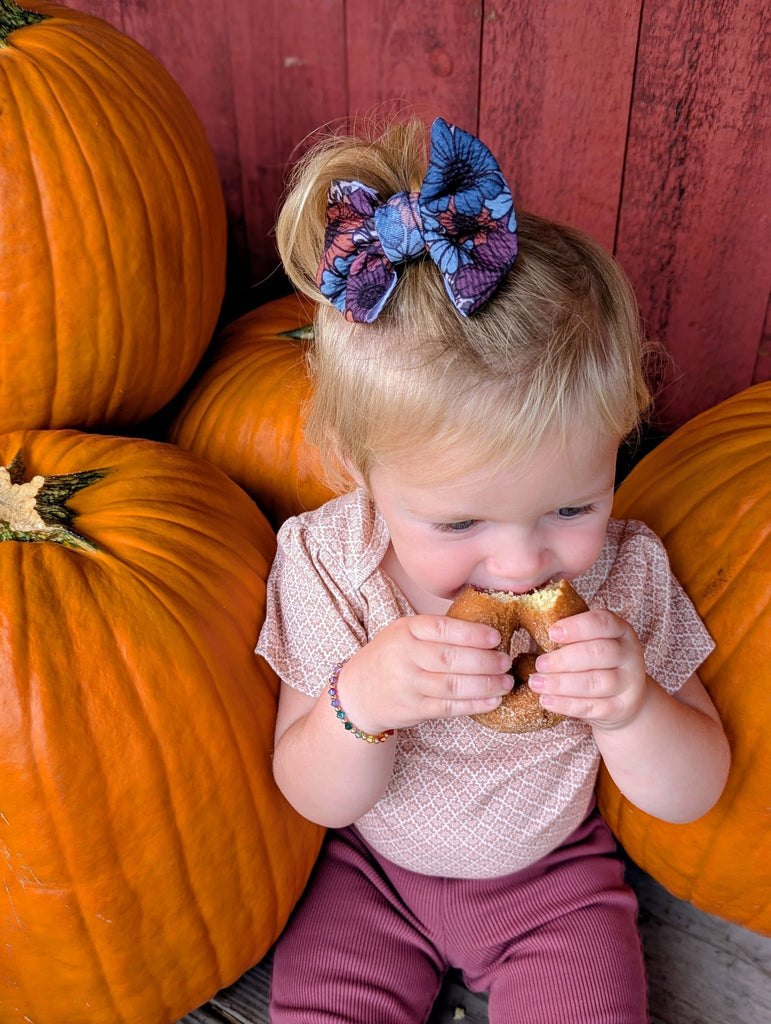 This bow blooms with rich fall florals and pop of leopard. It gives all cozy sweater weather energy.